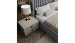 Дополняют кровать стильные и функциональные прикроватные тумбы "Стелла". Их рельефные фрезерованные фасады и элегантные ручки делают их настоящим украшением спальни. Ящики оснащены современными бесшумными механизмами с доводчиком Внутри достаточно места для хранения личных вещей.