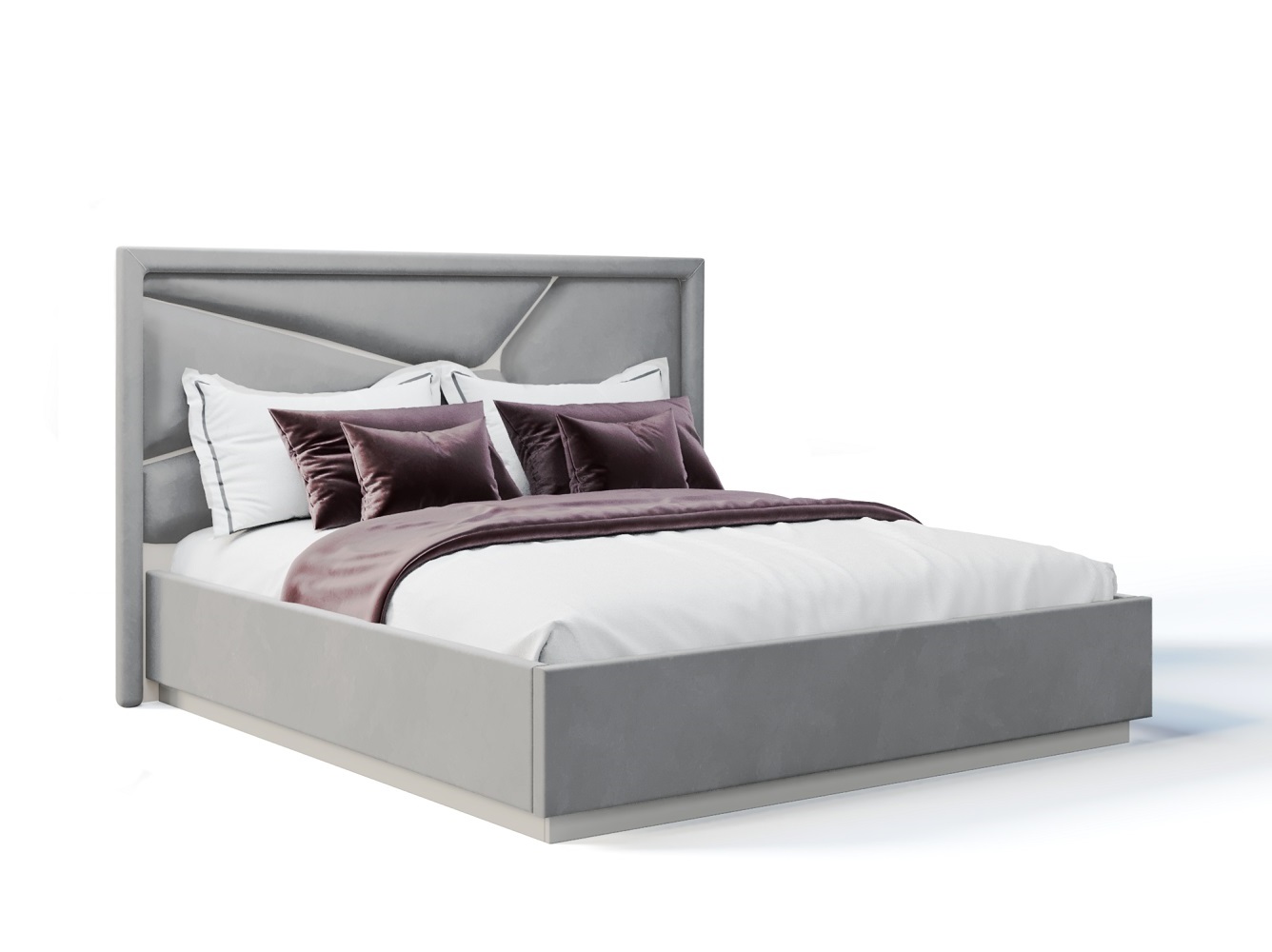 Изголовье: ЛДСП в ткани Велюр серый (как у кровати Замира и ММ Гравита) , мягкие элементы размещены в виде мозаики с мягкой рамкой по периметру;