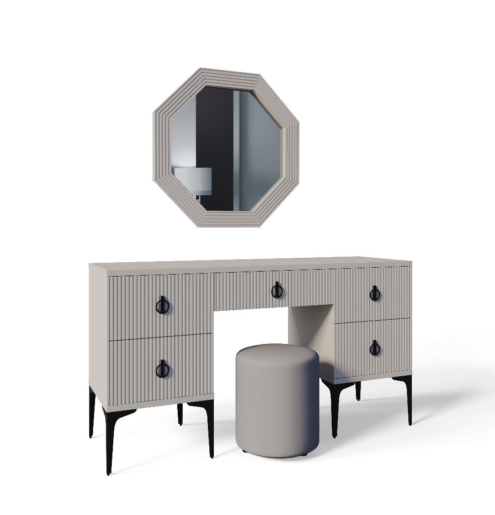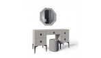 Туалетный стол "Стелла" придает интерьеру особый современный шарм. Просторная столешница и удобные выдвижные ящики, оснащенные доводчиками, обеспечивают максимальную функциональность и комфорт в вашей спальне такой столик можно использовать как косметический в паре с зеркалом, так и как рабочий стол для студента или школьника. Мягкий стильный пуф является дополнением к туалетному столу
